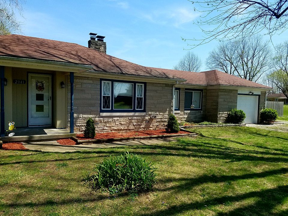 Outside city limits. 5 min to South terre haute food and shopping.1 acre, 2,179 square foot Bedford stone. Full finished basement. Upstairs has 3 bed, 1 Bath, living room with fireplace, full eat in kitchen. Basement has family room, bathroom/laundry room, plus 2 other rooms that could be extra living space. 1 car attached garage, 2 1/2 garage behind house. Has a storage barn also . Entire back of property has a privacy Fence. Nice black side by side fridge, stove, dishwasher included. Heat pump Furnace , digital touch screen hot water heater ,Culligan water softener. Total electric, well water, septic.