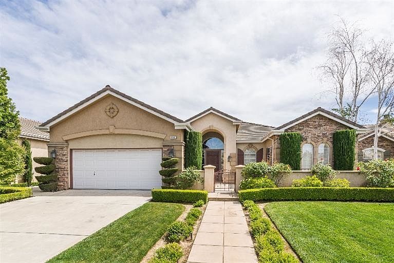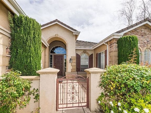 This distinctive 2,373 sq.ft. Fontano Delfino home is nestled within a distinguished gated community in northwest Fresno. The private courtyard features a beautiful fountain and provides additional outdoor living space to relax and enjoy. The grand entry opens to a large living room with high ceilings and a bonus room currently set up as an office with gorgeous custom built-in cabinetry and a custom built-in desk with granite countertops. The kitchen is impressive with granite countertops, a large center island with a breakfast bar and double sink, and deluxe appliances. It opens into the great room with a spacious breakfast nook area that could also be used as a formal dining area. This home is perfect for entertaining friends and family. The master bedroom and bathroom suite is impressive. This home has custom window coverings throughout. The lovely backyard features various trees, shrubs and grass with a covered patio and outdoor speakers to enjoy music when outside. A Must See.