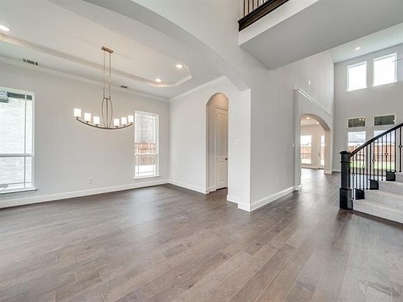 MULTIPLE OFFERS RECEIVED. Please submit best and final by noon CDT 7-5-2022. Brand new with upgrades galore, this beautiful modern mediterranean style home is ready for immediate move-in! Front door shows off its modern vibe with horizontal glass panes, welcoming you to this impeccable home. Several options for multi-generational space: guest bedroom downstairs with en suite bath plus junior suite upstairs. Huge family room downstairs with central featured 2-story custom fireplace with auto on-off switch. Kitchen is open to family room with upgraded large island, lots of cabinets, custom backsplash plus butler's pantry with walk-in pantry. Pendant lights over island. Elegant dining area with modern fixture and box vault ceiling. Windows strategically placed for an abundance of natural light to augment the recessed lighting. The Porte Cochere serves as covered walk-way from 1-car garage to home. The 2-car garage has direct entry to home. Private yard space for pets, play or gardening.