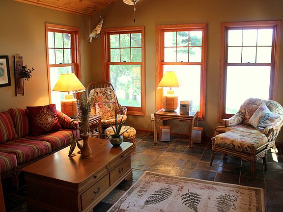 Well kept home on with 391+ feet of lake shore on private spring fed lake. Home has granite counter tops, double sided gas fireplace, large master bedroom suite, attached and large detached garage, tarred driveway and lakeside deck and full unfinished basement. Property offers 19.51 acres of privacy with massive pines, 1 acre organic garden, beautifully landscaped and fully fenced yard.