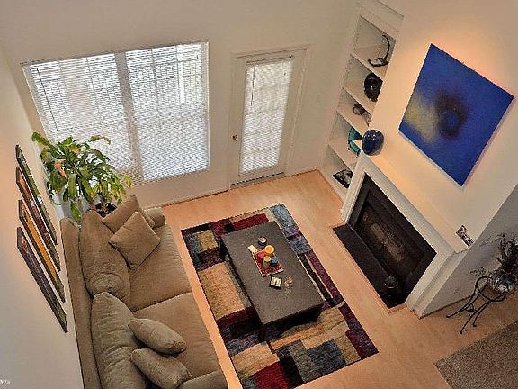 Spacious penthouse condo (3rd Floor) with 1295 SF and fully renovated Master Bath! Dining Rm + Living Rm + Kitchen all have new pergo-style floors. High ceilings and large 18 x 8 balcony. Gas burning FP and built-in shelving in Living Rm. Large loft (wired for surround sound) adds extra media rm or office possibility. Lots of closet space, too.