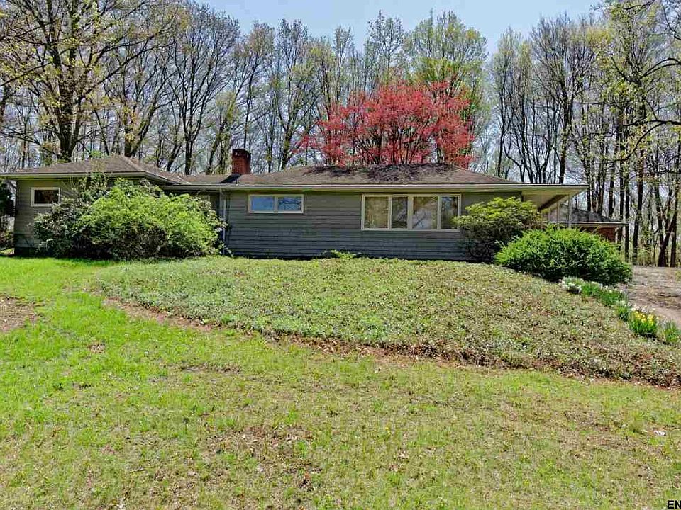 Classy mid century ranch on beautiful lot in Schodack. The home sits off the road for privacy and features hardwoods, large living/dining room, spacious bedrooms, 2 car garage + workshop, 1st floor laundry, wrap-around slate patio, exposed brick, Schodack Schools.