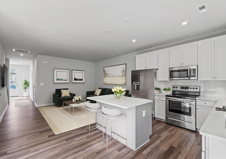 This fantastic easy flow brand new Amara plan at Lakeside Landing is the END unit overlooking the pond! Be the first one to live in it. This beautiful and functional floorplan offers the convenience of maintenance-free living, while also offering a private backyard that backs up to water! Walk in your front door to a spacious foyer with an ample coat closet, and walk back to the kitchen of a chef's dream with an open concept to the living room and dining room. A private backyard is off of the kitchen and dining room, with an included concrete patio that is perfect for an evening dinner for two. Upstairs, the spacious owner's suite with a huge walk-in closet and beautiful owner's bath offers the tranquility end to your day. Two large secondary bedrooms, a second full bathroom and a huge walk-in laundry room complete the second floor. Just up the road from SB's Lakeside Love Shack, Hobnob, Final Gravity, Carytown Burgers and Fries Lakeside, and Bryan Park, you will be within walking distance of the most beloved staples of the Northside. Act quickly, as there are only two buildings remaining in Lakeside Landing! Call to schedule an appointment today. *Photos are of a similar home.* Excellent rental history is a must with very good credit history. Owners pays HOA fees to include trash pick ups, exterior maintenance, etc. Plenty of parking spaces.