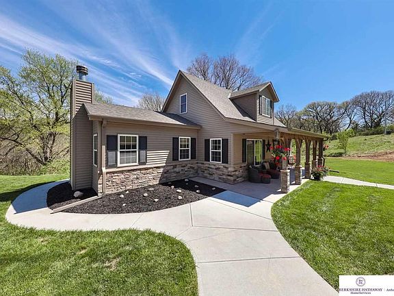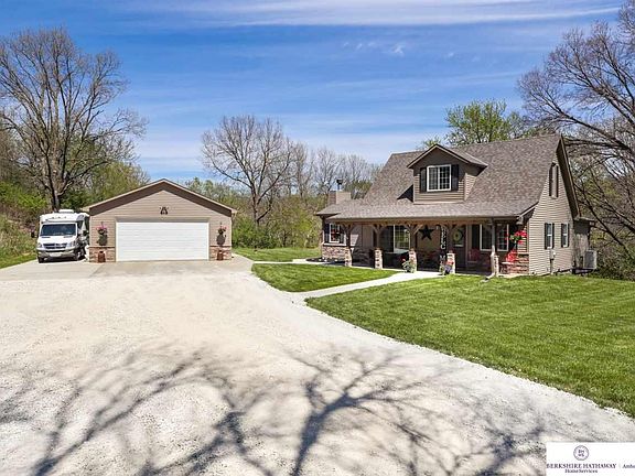 PICTURE PERFECT MODERN FARMHOUSE on over 10 ACRES nestled among the trees just minutes from the city! Prepare to be impressed by this lovely home that is full of charm & character w/fabulous finishes & details throughout. Spacious open floor plan. Gorgeous luxury vinyl plank flooring. Fireplace. Barn doors. Farm house sink. Granite. SS appliances w/dbl oven. Large kitchen island. MSTR suite w/walk-in closet & laundry. Newly refinished walk-out LL with 1/2 BA. Cozy covered front porch. Huge wrap around deck. 24x36 detached garage. 40x70 outbuilding w/concrete floor, horse stall & attached fenced pasture. Maintenance free vinyl siding & stone. Fort Calhoun Schools. Tons of wildlife. Perfect set-up for the avid hunter. Come witness the peace & quiet of country living on this private oasis and see everything this fabulous property has to offer.