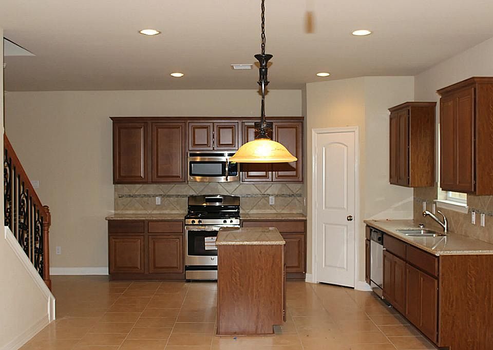 Newly constructed...2 story home featuring 1st floor tiled, niches in living area, rod iron stair case railings, his & her closets in master bedroom, crown molding & a coffered ceiling in master, 3 sides brick plus covered patio, 9 ft. ceilings, stainless steel appliances, granite counter tops, tile back splash in kitchen, 42 inch upper cabinets plus many more features you will enjoy. This home is absolutely gorgeous!!Community offers skateboard park, lake views + walking and bike trails