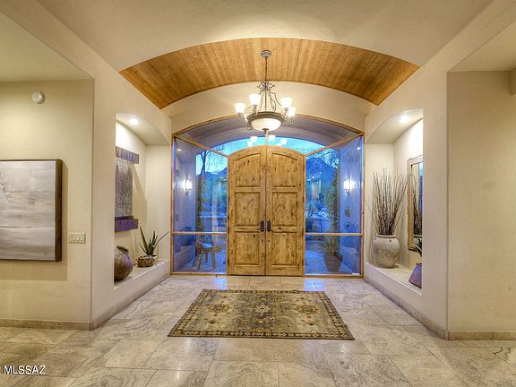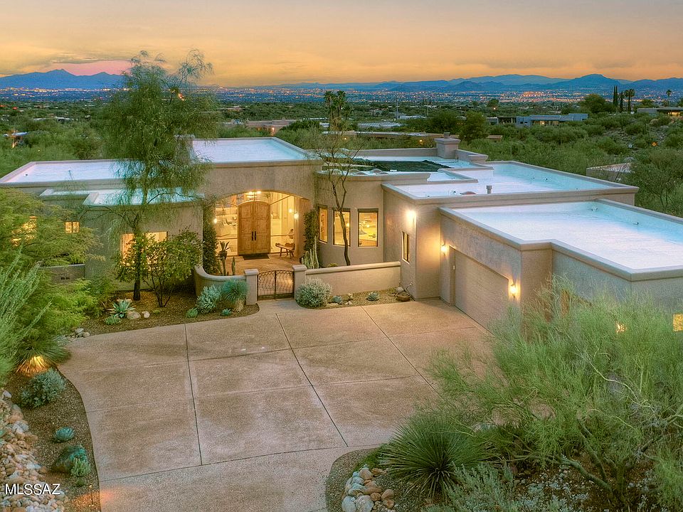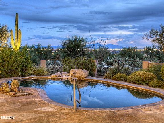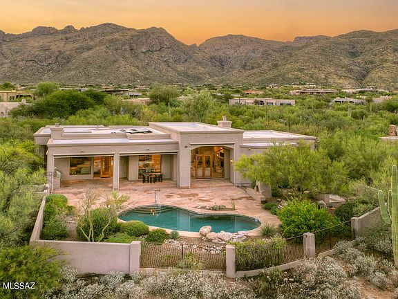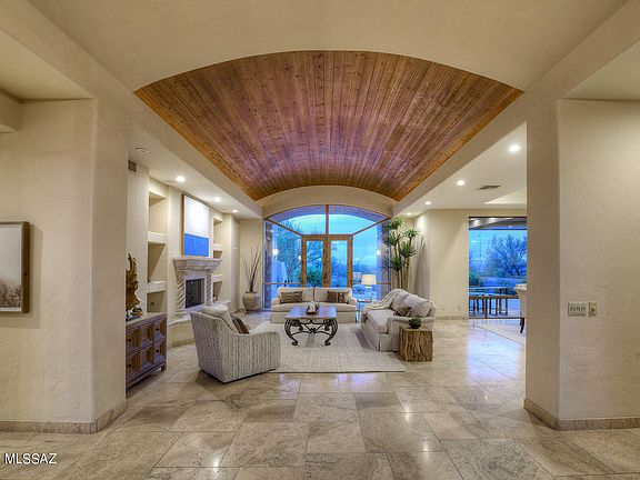 Southwest contemporary in coveted Pima Canyon Estates. The 4BR/4BA, 4000 sq.ft. home w/open floor plan is perfect for casual living and entertaining. The great room features a stunning curved wood ceiling and cantera stone FP. The DR is sited to enjoy the beautiful city lights and pool. The Family room w/FP and built-in entertainment center opens to the stunning backyard. Gorgeous chef's kitchen has views of the Catalina's, SS appliances, huge island and custom cabinetry. The primary suite includes a sitting area, spa-like BA w/soaking tub and sep. shower. A study or 4th bedroom w/ensuite bath is nearby and 2 additional guest rooms are in a separate wing. Enjoy the huge backyard w/pool, gas fireplace & built-in BBQ. Oversized 3-car garage is great for hobbies or large vehicles.