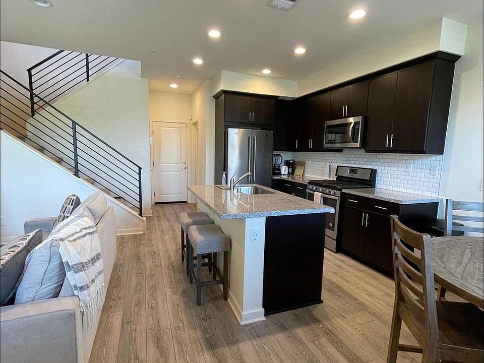Available Furnished or Unfurnished , this two-story townhome in a safe, walkable neighborhood! This home has two bedrooms plus a large loft area upstairs, perfect for an extra pullout bed or office space. The home also features 2.5 bathrooms. Kitchen on first floor has a granite countertop island. Home has modern finishes throughout. Unit features a two-car garage with epoxy flooring. Home has washer and dryer in-unit. Community has pool and entertainment room. Owner pays for landscaping and anything inside the walls that falters such as in pipes and electrical. Pets incur a fee, and must be approved by management beforehand. No smoking. Security deposit is based on credit. Lease options available. Please inquire for more information. Pets incur a fee and must be approved by management beforehand. Property available furnished or unfurnished. Please inquire for more information.