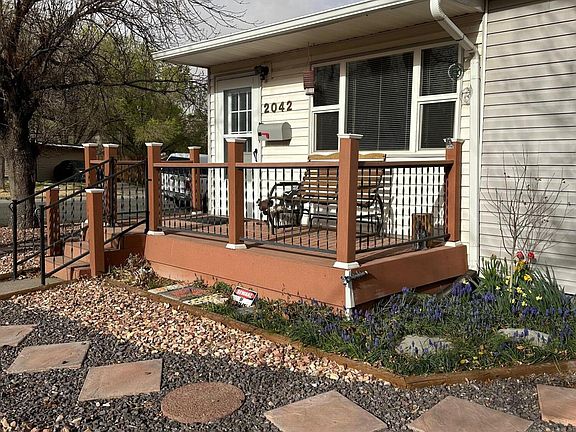 Discover pride of ownership in this three-bedroom, two bathroom home on a coveted corner lot. This charming mid century rancher features original hardwood floors, hardwood doors and a primary bedroom with ensuite bathroom. The large room off the kitchen could be used as a formal dining room or could double as the family room. The one-car heated garage, convenient covered double carport and large driveway offer plenty of parking for extra vehicles, toys and the RV. Enjoy peace of mind with a brand-new roof and sewer that was replaced in 2012. The xeriscape yard, complete with raised garden beds offers a low-maintenance oasis. And for ultimate relaxation, unwind in the luxurious hot tub in the privacy of your fenced in backyard. Don't miss your chance to make this home yours.