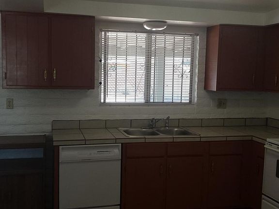 Great 2bedroom/2bath home in Central Tucson. Quiet neighborhood, close to schools, bus lines and shopping - near Pima/Rosemont. Entire house re-plumbed in 2014, new evap cooler unit in 2013, fresh paint, new kitchen sink and countertops. Ceramic tile throughout house (NO CARPET). Lots of windows make for a very light/bright home. Separate laundry room off kitchen with door out to carport and storage area. Large eat-in kitchen with sliding glass doors out to extended covered patio. Huge rear yard with double gates would be ideal for pool, garden or to store your RV or boat. Metal storage shed stays.