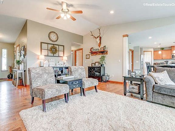 BEE UU TEE FUL! One level 2013 home with wide plank floors, Large great room with views of 50 acre pasture and the hills beyond, 3 bed + Nursery/Office.Granite in oversized kitchen,walk in pantry, island & LOTS of cabinetry! Master suite is 17 x 18 with walk in closet, soaking tub & double sinks. A/C for the hot days & In-ground sprinkler front & back, large patio, fire pit, RV parking and fenced on 13000+ lot. Xtra room off garage!