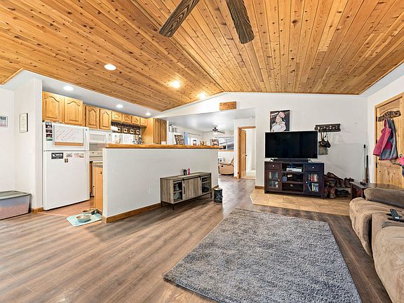 Drive along the country road into the private home setting - head up the stamped concrete to the full length deck, great open floor plan home w wood and kerosene heat, granite counter tops in kitchen & so much more, 101 acres for your animals & privacy. Newer septic, 2 ponds, shop, barn, hay storage & multiple out buildings. Fenced & Cross fenced. 2 pear, a few apple and other fruit trees. 2 car carport attached and 2 car carport detached - room to park vehicles & trailers. Small chicken pen also.