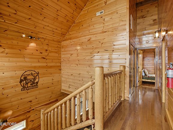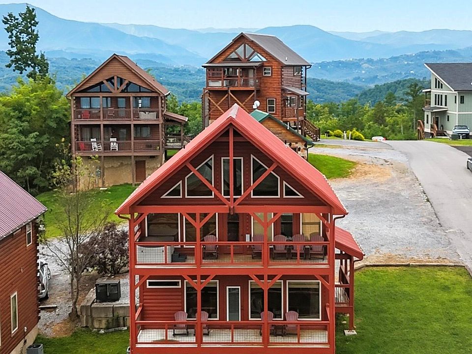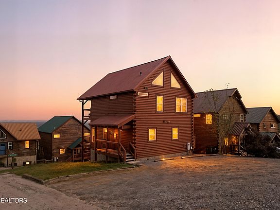 Just 5 minutes from Dollywood, this custom-built 3-bedroom, 3.5-bathroom cabin sits proudly on a corner lot with breathtaking city and mountain vistas—and those unforgettable red sunsets. Enjoy the magic from double decks or relax in the hot tub as the city lights sparkle below. A large parking area accommodating up to 4 vehicles makes it perfect for family gatherings and guest stays.