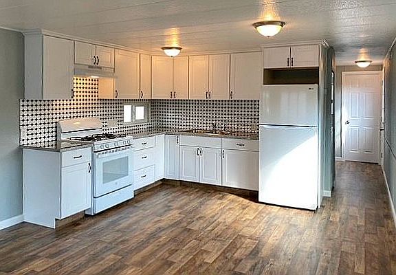 This completely renovated and spacious one-bedroom gem features luxurious laminate flooring, new paint inside and out, brand new appliances, new kitchen, bath and more! This home features a large bedroom, friendly neighbors, and is close to amenities. It has a washer and dryer in the unit for convenience and wall mounted AC units to keep you comfortable in the summer. The park is a quiet and friendly 55+ mobile home park in the middle of a great community! Space rent is $650 and includes water, sewer and garbage.