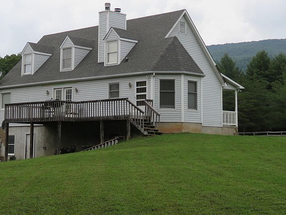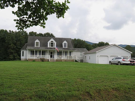 Cape Cod house featuring 3 bdrms/3 1/2 baths on 5 ACRES(HORSES OR COWS ALLOWED) with CRAIG CREEK FRONTAGE!Centrally located between Roanoke&Blacksburg!5 ACRES is mostly all open&lays well!Entry level Master Suite/Detached vinyl siding 3 car garage!(28x32)LRG Covered front porch&LRG rear deck/Gas furnace 4 months old!New gas rangewave!Bay window in dining area/Pretty kitchen with lots of cabinets!Hardwood floors!Stone fireplace with blower&gas logs(could be converted back to wood burning)New Carpet thru whole house/Basement has an ADDITIONAL washer/dryer hookup&rough in for another bath!Brand New Pressure Tank/Paved driveway/2 polesheds/Applachian Trail within 2 miles&National Forest shooting range& Pandoppas Pond within 10 min!Lots of ceiling fans!Fast internet speed!Great garden areas!