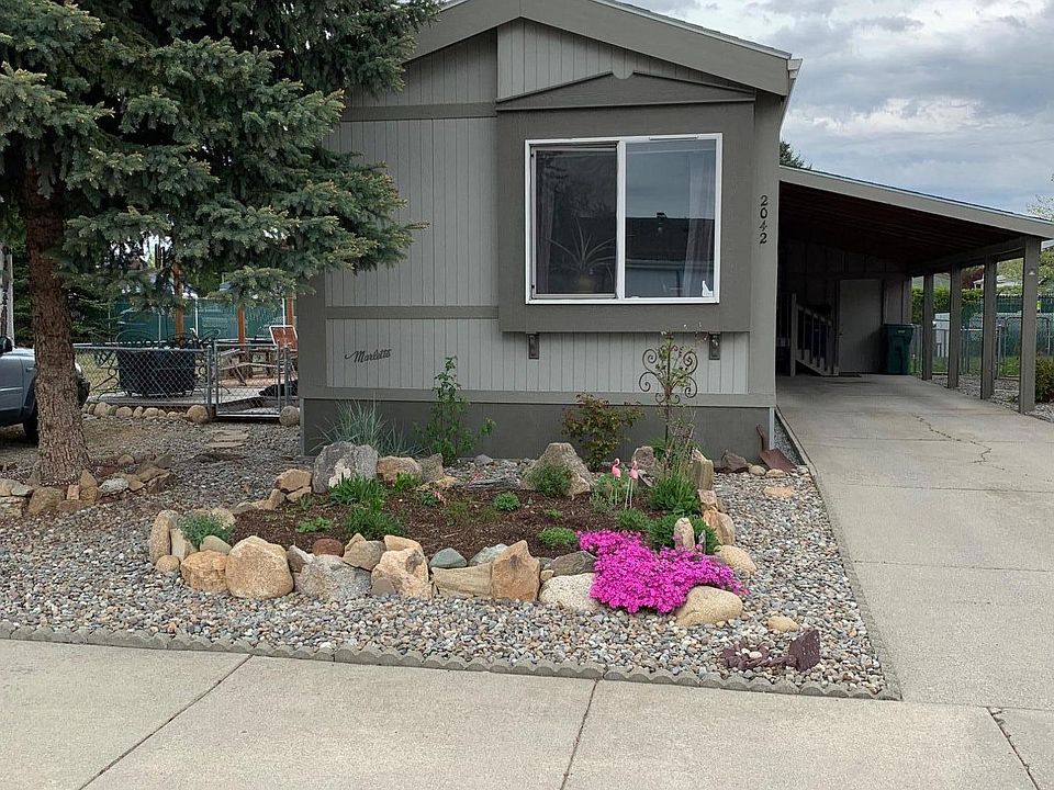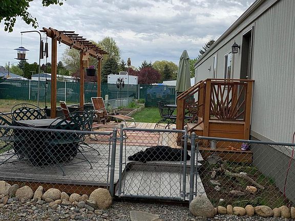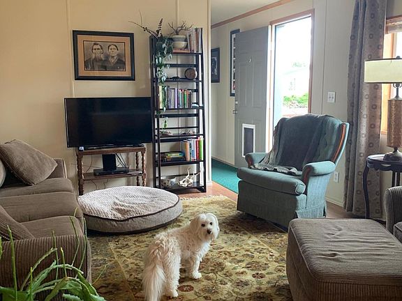 Bring your pet- Pride of ownership- Oakcrest Park 3 bedrooms 2 bath. Beautiful open deck! Raised gardens, landscaping, new roof 2017, new siding 2015, insulated skirting, open living room to kitchen-Hardwood floors. Carport shop/storage, fenced yard, home has a doggie door!