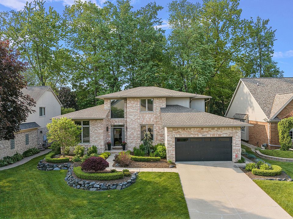 Spectacular custom built and designed split level home offers a long list of upgrades and updates. Spacious open floor plan with tons of natural light. Great room offers newer neutral carpet and paint, porcelain surround gas fireplace with custom nickel doors, quartz countertop wet bar with wine fridge. Beautiful window with views of the lush backyard. Cooks Island kitchen with quartz counters and backsplash, stainless steel appliances, large walk in pantry. Master bedroom offers newer carpet, dual sinks with quartz counters, jet tub, large shower and walk in closet. Large den for home office or library, guest room. More upgrades in the last 5 years include updated quartz counters in all baths, furnace central air, HWH, leaf guard gutters, outside wired generator, newer carpet and fresh paint throughout and professional landscape. The very special private backyard is so peaceful and beautiful to relax in.
