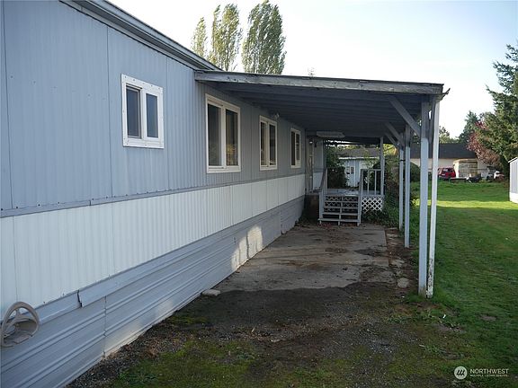 $10K Price Reduction! Seller is ready to sell! All age community! This 2 bedroom 1 bath 924 SF home is centrally located with easy access to I5, Burlington Shopping, and city parks. Updated Vinyl Windows, Large yard, fully covered carport and front deck with a large storage shed behind the home. With some love and care this home will shine once again. Low space rent for the area. Please go and see it before it is gone!