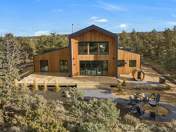 A rare legacy property with sweeping Cascade Mountain and Deschutes River views, this Scandinavian-inspired retreat blends modern craftsmanship with timeless design. Built in 2021, the residence offers 3 bedrooms and 3.5 baths, curated for privacy and effortless luxury. Custom concrete countertops, Baptista tile accents, and a chef's kitchen appointed with Thermador appliances reflect exceptional attention to detail. A dramatic five-panel folding door system seamlessly connects indoor living to the outdoors, capturing the home's expansive natural surroundings. Set on over four acres of non-irrigated, native landscape, this private sanctuary offers a profound sense of space, serenity, and connection to the land. The detached 2 bedroom guest house provides for multi-generation living or a private space for guests.
