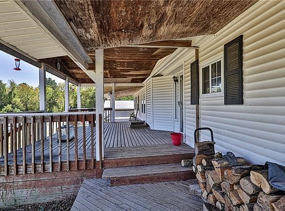 Want the picture-perfect view from your front deck? Here it is. This home overlooks a pond in the front yard. Looking for space to spread out. This home has it all. Large home with a finished basement that could be a separate living area. The large living room, with a cedar board ceiling and kitchen, with an island and double oven, make it perfect for big family get-togethers. The huge shaded deck on the back of the house along with a fire pit, covered area, and swing set, makes entertaining easy. The Master bath boasts a separate jetted tub and shower. Huge outbuilding, almost 40 x 60, with concrete floor and electric. The lift and air compressor are staying. The detached three-car garage has a covered walkway to the house. All of this is on almost 5 acres close to Pleasant Hill. Pleasant Hill Schools. Dont miss out.
