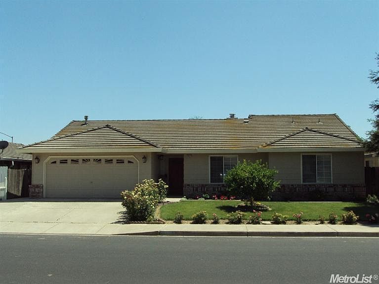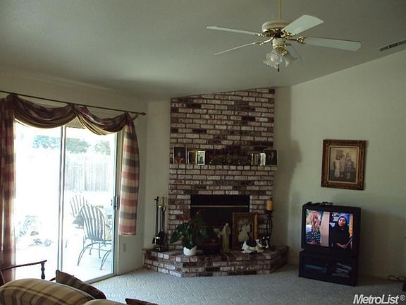 Immaculate Single Story 3/2 with an spacious open floor plan & move in ready. Bight kitchen w/lots of cabinets and an island counter. Family Rm s vaulted ceiling, brick fireplace and slider to patio & backyard. Master has two closets with outside access. Pool-sized yard with nice out building for storage & lots of potential for your desired landscape design. Several fruit trees - apricot, peach, nectarine, orange & fig. Desired location in quiet neighborhood.