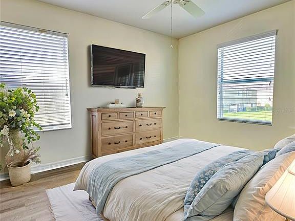 One or more photo(s) has been virtually staged. This beautiful 2-bedroom, 2.5-bathroom townhome is in the highly desirable gated Hammocks community known for its mature landscaping and resort-style amenities. This condo offers two upstairs master suites, each with its own private bathroom. The Open-concept kitchen features granite countertops, stainless steel appliances, an eat-in area, and plenty of cabinet and counter space. Tile flooring runs throughout the main level, including the living room, which includes built-in shelves and a laundry closet. Sliding doors off the kitchen lead to a brick paver patio overlooking a grassy area great for relaxing or outdoor dining. Large master suite with walk-in closet and private en-suite bathroom featuring dual sinks and stand-up shower. Second bedroom with its own full bathroom perfect for guests, roommates, or a home office. Assigned parking is conveniently located just outside the unit. Community amenities include a swimming pool, clubhouse, and fitness center, all within walking distance. Located near major highways (I-75, I-275), USF, Wiregrass Mall, shopping, dining, and healthcare. A practical and convenient option in a great New Tampa location. $150 admin fee due prior to move in.