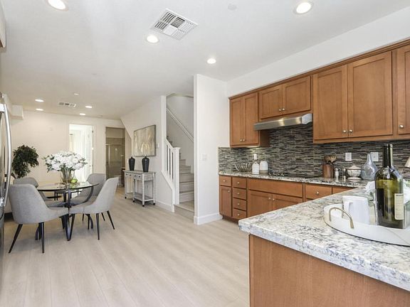 Welcome to this contemporary sophistication townhouse.This stylish home features many modern conveniences including a bottom floor bathroom, eco-friendly thermostat, two car side-by-side garage, Solar System and whole house hardwood (SPC) floor. The main living area features high ceilings, a light filled open concept kitchen/family room that open to a elegant patio loaded with beautiful view.A modern gourmet kitchen features major upgrades including modern stone countertops, stainless steel appliances and custom cabinets. An oversized master suite includes a beautiful shower and dual sink vanity. Located near the Permanente Creek Trail (easily walk or bike to the Googleplex), Safeway, Costco, Caltrain, Castro Street, Shoreline, two nearby parks, the Whisman Sports Center which has a great community vibe, and the Kannon Do Zen Meditation Center next door and award-winning Mountain View schools.