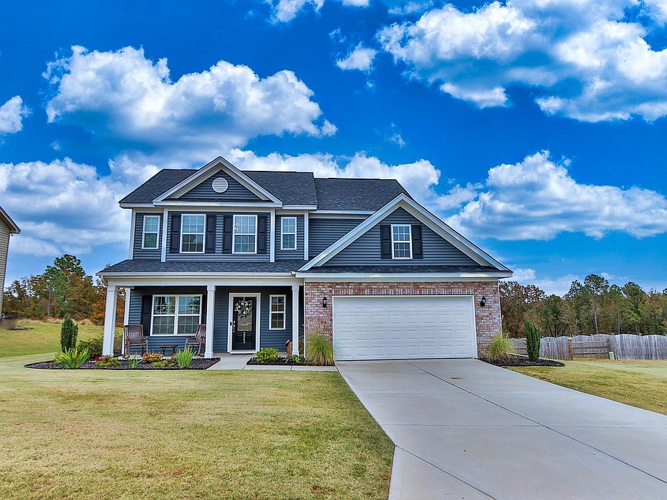 This beautiful 4 BR, 2.5 bath home sits on a large .43 acre lot in a beautiful pool community! The cozy and spacious Family Room has fireplace, archways, judges panel and crown molding. Neutral paint throughout. The large kitchen is located off of Family Room and features white shaker cabinets, beautiful granite countertops, subway tiled backsplash, island, pantry and a HUGE breakfast area which will hold a large dining table. Bluetooth speaker system. Current owners just added a large covered porch off of breakfast area which looks over a private backyard. The master suite is on the main level and has a boxed ceiling, garden tub, dual vanities (custom painted), separate shower and walk-in closet. Upstairs you will find 3 spacious bedrooms with walk-in closets. Great community with nice pool and playground.