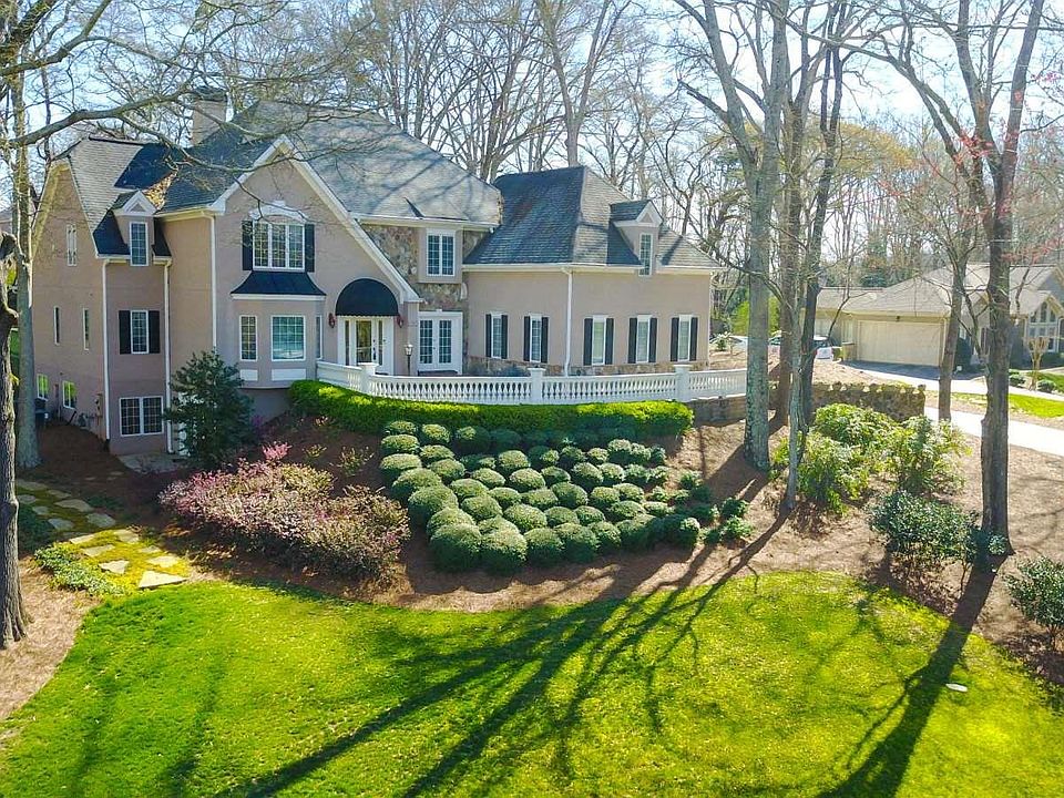 JUST REDUCED BELOW APPRAISED VALUE!!! Hurry and come see this beautifully landscaped, traditional Chateau Elan home boasts open Two-story cathedral ceilings in kitchen and living area, impeccable woodwork, built-in bookcases and real plaster molded trim details in Master. Chef-style kitchen, finished with only the best. Sub Zero Refrigerator, Viking cooktop, SS tile backsplash and granite counters. Master bath and bsmt kitchen large travertine tiled floors. Finished basement provides full kitchen, separate custom build bar, entertainment room, living room, half bath, storage, workshop and larger walk-in pantry.