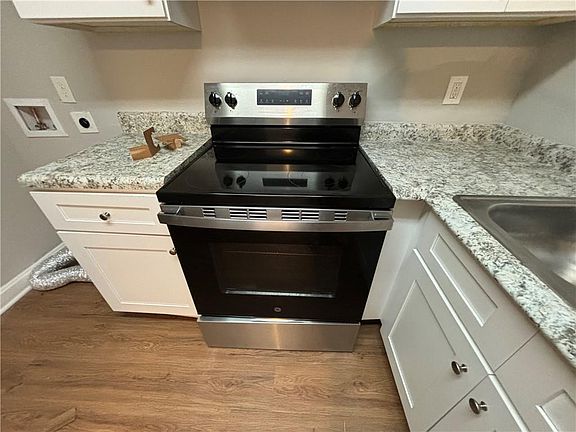 Open versatile layoutStainless steel applianceGranite countertopsWhite cabinetsCovered porch
