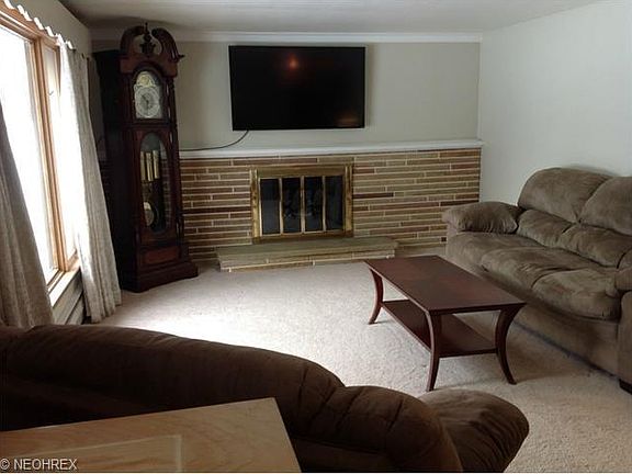 Brick 1350 square foot Ranch nestled on .32 acre lot on dead end street with Private backyard! This well maintained home invites you into large living room w/gas fireplace& large picture window. Fully applianced kitchen with plenty of cabinet space/pantry/new flooring-countertops-backsplash-and stainless appliances overlooking dining area with sliding doors to 25x12 sunroom great for relaxing while enjoying wooded view or perfect place to entertain guests/family gatherings. First floor full updated bathroom. First floor 15x12 master bedroom along with two other size-able bedrooms. Full waterproofed basement with partially finished rec room w/fireplace, half bath, workshop& storage area. Two car attached garage. Other Updates include: interior paint, some flooring. First floor bath, light fixtures, waterproofing, roof 2009.