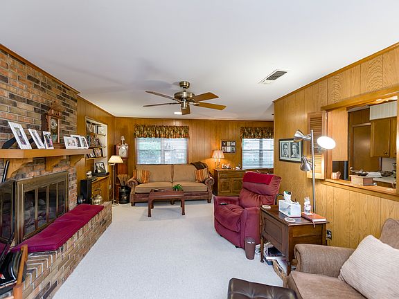 Viewing this beautiful one-owner home is like stepping back in time! This home has been meticulously maintained thru-out the years & still retains the original period charm of the mid-century Ranch. The curb appeal is outstanding with a brick exterior, pretty evergreen landscaping, & a big front porch for greeting guests. Just inside the foyer is an elegant formal living/dining room with neutral paint & carpeting. The den is warm & inviting & features a wood burning fireplace with a brick hearth & custom built-in. Just off the den is the galley style kitchen with updated appliances including a smooth top range & built-in microwave. Each of the 4 bedrooms is roomy with a ceiling fan & ample closet space & the master features a private bath & 2 closets. The accommodating hall bath has a double vanity & full size tub/shower combo. There is even an all-season enclosed patio that offers even more living space. Attached 2 car garage, covered parking for an RV, & a fully fenced yard.