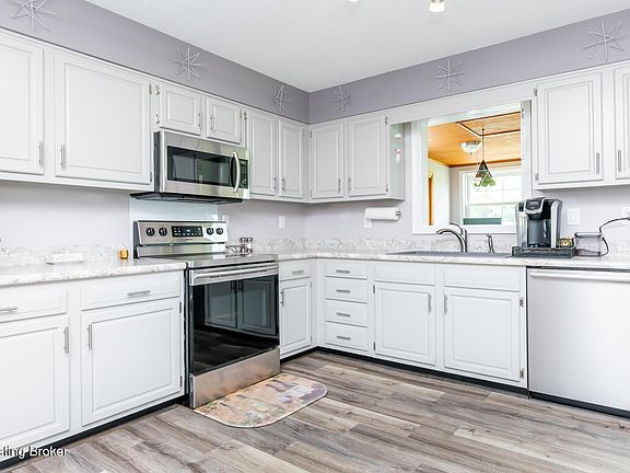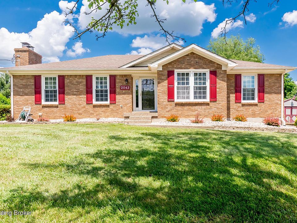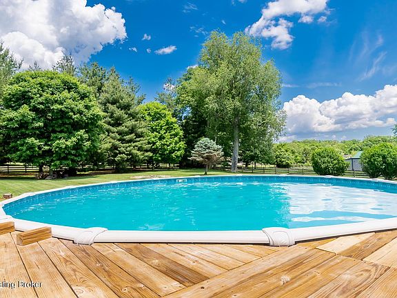 Wow, beautiful home on 1.04 acres, in Oldham County for under $400,000! Beautiful setting with tons of open yard space, lovely big trees across back of property line and an inviting pool with decking all around it. Let's describe the house now; beautiful 3 bedroom with large Master Bedroom and bath and another full bath. Huge kitchen with updated cabinets, countertops, new sink and faucet, stainless steel appliances and a convenient location for the laundry. The kitchen opens up to a big, bright sunroom that then opens up onto the covered ''BBQ patio''. New vinyl plank flooring in kitchen, sunroom and bedrooms in the past year. Entire upstairs has been painted, and bathrooms have all been updated including vanities, sinks, and fixtures. Great basement, click more for details! On the lower level there is a huge (21' x 29') family room with a second gas fireplace for all your football viewing parties. The 2-car garage on this level is also huge with room for 2 large vehicles AND storage/freezers/workbench. Your gardening supplies can be stored in the detached garden shed. There is so much room in this yard. Spot for your vegetable garden, tons of play space AND a shady area for your hammock under all the pines.