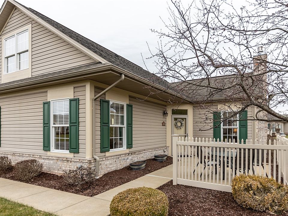 Move right in to brick & vinyl 1 of 24 Chateau floorplan patio homes in Cobblestone Village!Private setting w/common ground behind.Many updates, new furnace & air - 2021.Woodlike LVT flooring on 1st floor. Enjoy private fenced courtyard-like patio that leads to covered entry w/new storm door. Step in to entry full of light from 4 panel door w/2 windows & transom.Vaultd great room features gas fp w/new fan & ceram surround, decorative white mantle w/fluted side-pieces, 2 arch-top fireside windows,& 2 additional windows - lots of light! Spacious dining rm open to kitchen & great rm.Upgraded kitchen boasts new stainless appliances, bisque cabinets, glass bsplash, sun tunnel, & recessed lights. Spacious laundry w/tub & walk-in closet. Lrg master bdrm boasts fan, walk-in closet, private bath w/white vanity & walk-in shower. BR2 (den) w/walk-in. Vaultd BR3/loft w/full private bth. 2 car att grg w/omnistone floor. Pool, clubhouse, ext maintenance, lawn&snow care handles by the association!