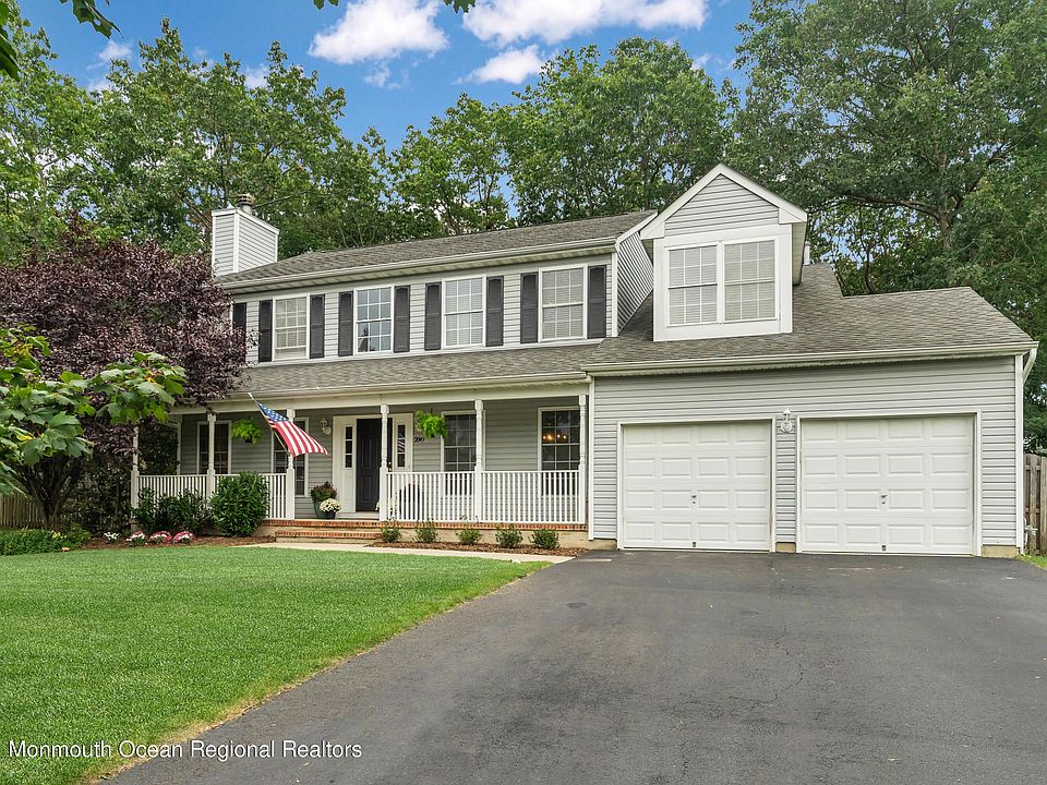This BEAUTIFUL home is PERFECTLY situated on a 1/2 acre corner property backing to woods for ultimate PRIVACY! LOVELY covered front porch WELCOMES you into this GREAT home. SPACIOUS two story foyer w/GLEAMING wood floors, DECORATIVE molding. Foyer leads you to LARGE formal dining room w/chair rail, picture molding and wood floors. Formal living room FEATURES plush carpets, crown molding, WOOD burning fireplace with mantel and marble hearth. FAMILY room offers wood floors and is OPEN to eat in kitchen. KITCHEN has center island w/over hang for extra seating, wood floors, STAINLESS steel appliances, pantry w/accented antique door, DINETTE area and slider that leads to private yard. Lovely half bath is featured on the first floor w/wainscottand slate floors. MASTER suite is GENEROUS in size features CROWN molding, walk in closet w/built in's, STUNNING remodeled full bath. MASTER bath has SOAKING tub, shower stall w/subway tiles, DECORATIVE vanity w/his & her sinks, room is ACCENTED w/classic white SHIPLAP walls! All bedrooms are great size w/carpet, one is a full dormer 13x20 decorated in board & batten w/built in desk. Full bath on upper level has been updated, new stylish vanity w/quartz top, beautiful flooring and freshly painted. BACKYARD has spacious PAVER patio off of kitchen slider, w/step down to another paver patio w/FIRE pit. Yard is fully fenced and has OVERSIZED storage shed. FULL BASEMENT offers endless possibilities! TRULY a BEAUTIFUL home located on a cult de sac. CALL today for your PRIVATE showing!