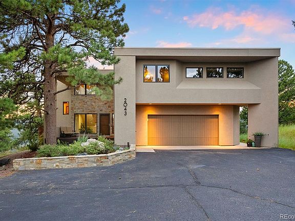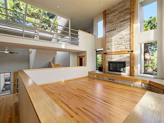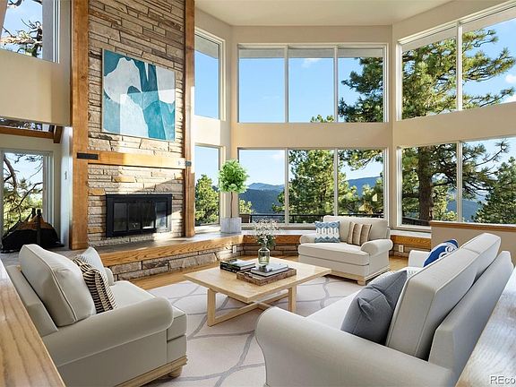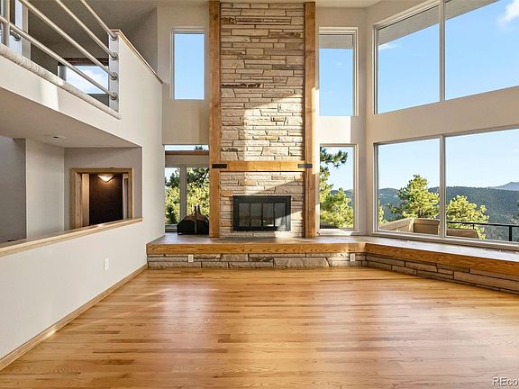 Imagine waking up each day in a perfectly nestled home on a spacious lot facing the mountains every day. Located in a perfect spot to bask in the sun and views this lot boast being connected to the trails and open space of Genesee and has an easy flat driveway to boot. This stunning mountain contemporary brings in all the traditional modern-day conveniences. Yet boasts a Frank Loyd Wright flair. From the moment you walk into the two-story flagstone entry, your eyes are whisked to the stunning view of Mt Evans and the foothills. The living room is accented with a 15 ft tall stone fireplace and gleaming hardwood floors. The open concept kitchen has stainless steel appliances, solid granite countertops and enough built ins to perfectly store and entertain. The breakfast nook overlooks the massive wrap around deck and cascading mountain view. The formal dining has a built-in china cabinet and again basks in the view. The main floor laundry mudroom is spacious with solid granite countertops and built in to make laundry an ease. The main floor also has two additional bedrooms and bathrooms. The whole upstairs is the primary suite. Before entering you have a reading nook. The walkway in another way to take in the views. Once in the massive primary suite you have a private patio and a custom closet system and 5-piece bathroom. The lower level also has stunning views out of every window. Accented with a stone fireplace massive bar with built in features, pool table, and walk out directly to the backyard make this an ideal setup. Quiet setting flat lot and ease in and out make this a wonderful setting. This is where the mountains meet the city. Elk, Deer, wildlife right outside of your windows. One detail of Genesee is the utility lines are buried to not impact the views. There is also Genesee Youth Swim Team and many nieghborhood activities.