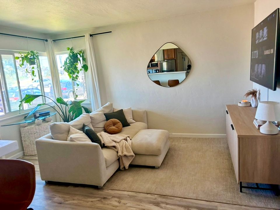 SHOWING Friday, April 18, 8 AM to 2 PM Saturday 11 AM appointment needed Detached, remodeled 2.5 bedroom | 1 bathroom house With insideLAUNDRY, WASHER & GAS DRYER 1.5 GARAGE additional rent Garage behind house in alley Large, remodeled kitchen with stainless steel appliances, dining area and large windows. Remodeled bathroom. Features a front porch and shared courtyard. Pets negotiable. LAUNDRY inside in hall closet. Small to average PETS NEGOTIABLE 1.5 garage Thank you Prime Location & Community Perks: 3 BLOCKS TO TOLLEY STATION at Claremont Drive Minutes to Mission Bay Easy Freeway Access Easy access to the 5 & 8 Freeways - quick drive to PB, La Jolla, and Downtown Walk to Local Hotspots Luce, Bay Park Coffee, and Bay Park Fish Co. and more Nearby Parks & Trails Explore Tecolote Canyon or catch a sunset over the bay 1 year lease. Tenant pays SDGE