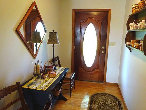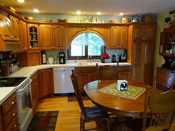 Peaceful seclusion surrounds this custom built ranch home; Situated on 9.08 acres; 2 BR, 2 baths, jet tub; Open great room; Oak kitchen, floors, 6-panel doors; Crown moldings; Central Vac; Basement has FR, 2nd kitchen, utility room, BR & bath; 2-car attached 25x26 garage; 15x30 shop; 24x45 open sided bldg; Nicely landscaped; Deck, porch, patio & pavilion! Average Monthly Utilities: Electric - $200