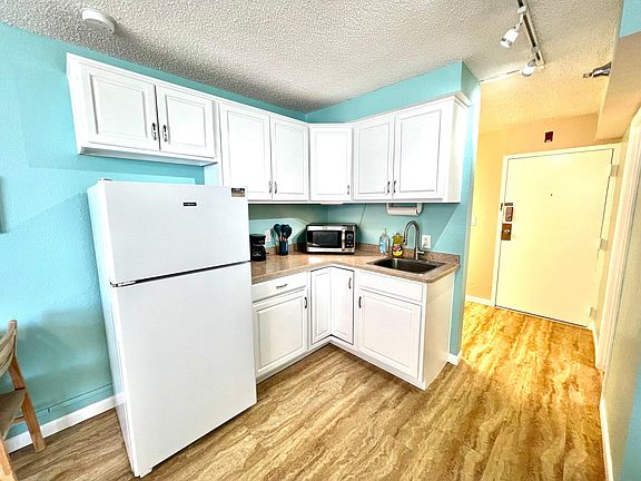 Condo comes completely furnished with a queen sized bed and a sofa sleeper. TV, dinette table, and full-sized fridge/freezer.