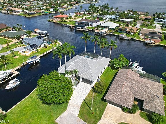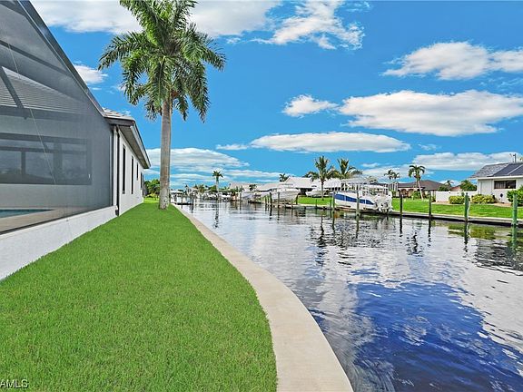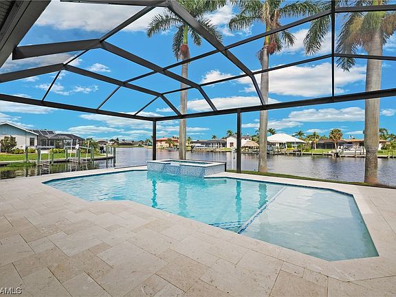 Seller Says SELL. SHORT SALE !!! .Can you say WOW that View! 246+ feet of water front property. No flood waters in this home,, no damage from Hurricane Ian. Welcome to your like new home with expansive water views from almost every room in the home.. This beautifully renovated home eludes with luxury and comfort. From the moment you enter into this home with it's massive steel door you will fall in love with the quality of the marble floors, the Jenn Air appliances, the spacious open floor plan the water views from most rooms and then the gorgeous outside space which allows you plenty of room to entertain with friends and family while cooking on your outside summer kitchen. In the evenings you can take a dip in the pool or soak in the hot tub while you are watching the dolphin play and the boats travel by. This home offers room for everyone with 4 bedrooms, 3.5 baths and an office space with windows facing the intersecting canals. There is an extra piece of land called a hammer head that is large enough to build an additional 2 car garage w/ apartment. The design has been created and approved prints by the city, available for your review. Don't spend to long thinking about this it will be gone quickly. We have included virtual designs for this home.