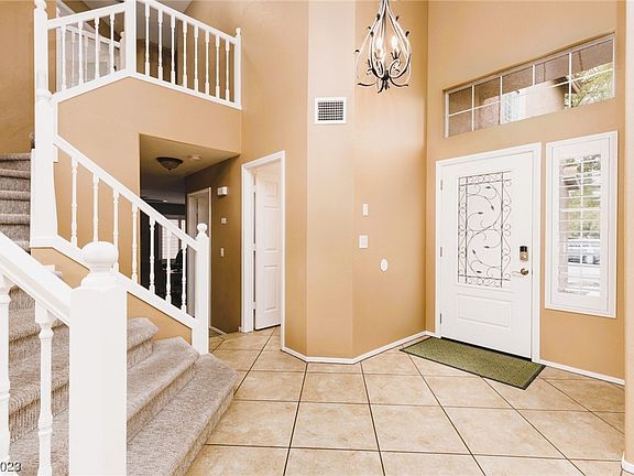 This is your chance to own in the desirable Henderson community of Silver Springs! This spacious 5-bedroom, 3-bath home sits on a large lot with a sparkling pool and heated spa. The light and bright interior features huge vaulted ceilings, a dramatic staircase, and a gourmet kitchen with gas cooktop, built-in oven, stainless farm sink, walk-in pantry and custom countertops. The generous primary bedroom has its own balcony overlooking the oversized backyard. The remodeled primary bath includes a frameless glass shower, fashionable tile, and custom barn doors. There are three additional bedrooms upstairs, plus an extra large bedroom than can be used as a bonus room that can be used for anything you can imagine! Plantation shutters, upgraded lighting and ceiling fans throughout.This home has been well maintained with great pride of ownership. It's also next to Silver Springs rec center with tennis courts, fitness center, and pool. Quick access to shopping, freeways, and medical centers.