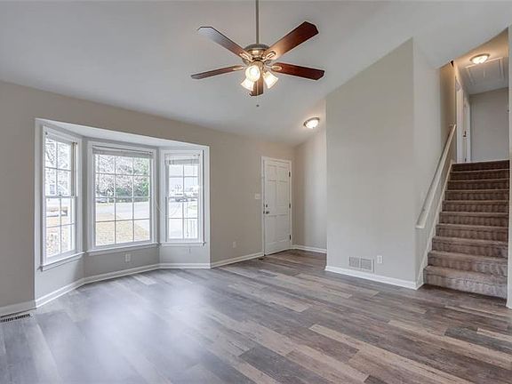 Updated 3 bedroom 2.5 bathroom home with great entertaining floorplan! Walk in to your living with high ceilings and beautiful picture window. The kitchen is upgraded with granite countertops, white cabinets and new stainless-steel appliances. The dining area/breakfast room opens to sunken fireside family room which can make a great play room, entertaining space or additional flex space. The sunroom is the perfect spot to relax on warmer days and opens to the deck that overlooks private backyard. Enjoy the walking trail and nature park close by! Master bedroom is spacious with vaulted ceilings and separate master bath including upgraded tile shower and soaking tub. This one is a great option for first time homebuyers or investors looking for a great rental property. New flooring, paint, fixtures and more! Move-in ready home.