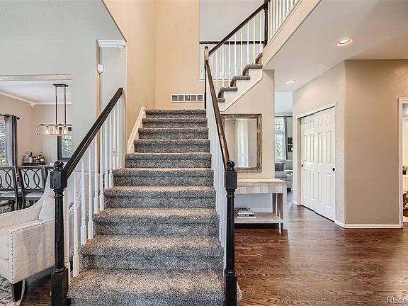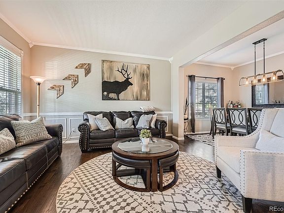 This stunning gem, located at the end of a peaceful cul-de-sac, offers 5 bedrooms and 4 bathrooms, ideal for comfortable family living. Step inside to discover a spacious, open-concept kitchen that flows seamlessly into the family room, complete with a cozy fireplace, and leads to a brand new composite deck, perfect for outdoor gatherings. The kitchen also opens to a formal dining room that connects to a welcoming living room, creating an inviting layout for hosting celebrations or relaxing at home. The walkout basement offers additional space with a large family room, wet bar, full bath, a 5th bedroom, and a flexible bonus room for added convenience. Located in the sought-after Willow Trace neighborhood, this home is just moments away from top-rated schools: Aspen Crossing Elementary, Sky Vista Middle School, and Eaglecrest High School, all part of the prestigious Cherry Creek 5 School District. Don't miss this opportunity to make this beautifully appointed home your own!