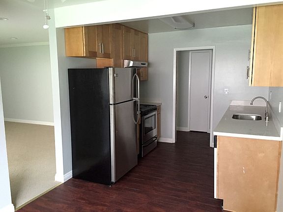 This spacious apartment is updated and detailed, and features upscale and custom finishes rarely found in an apartment community. The renovations include recessed lighting, wood finish flooring, high end designer carpeting, contemporary eat-in kitchen with new glass front maple cabinets, quartz counter tops, pantry, stainless steel refrigerator, electric range, dishwasher and disposal. Ample storage space with an extra-large bedroom closet, linen closet and coat closet. The bathroom remodel includes a new bathtub, subway tile, quartz vanity top and shower doors. The unit is equipped with a private patio, gas heating, dining ceiling fan, cable ready, plantation blinds, an outside storage closet and a covered parking space. The on-site management office and laundry facility are centrally located for your convenience. This community is beautifully maintained and professionally managed with an emphasis on personal service for our residents. Centrally located close to shopping, public transportation, 580/880, BART and 15 minutes from Cal State Hayward Please call for an appointment to view this beautifully renovated apartment. We look forward to meeting with you. Water and garbage are included with the rent. Smoking is not permitted on the premises.