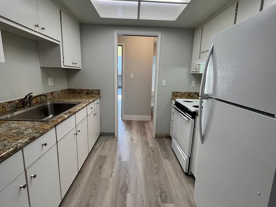 Beautiful remodeled 1 bdrm, 1 bath available in Castro Valley. Unit has newer quartz counters, laminate floors, patio/balcony and lots of closet space. Building is close to Bart, shopping, Castro Valley school district and unit comes with one parking space. Coin-operated on-site laundry available. Please contact our on-site manager, Sergio at (to schedule a time to view the unit. No pets please. Thanks for contacting Godwin Properties! Owner pays water and garbage. One parking space included with rent. Add'l parking available.