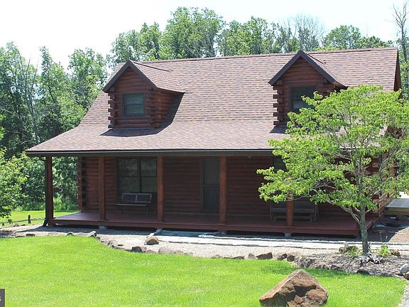 LOCATION! Imagine sitting on the front porch of this very rare Log Home, custom built by current owner. This Home has been meticulously maintained by owner/builder. Featuring: Open floor plan with balcony/loft, all beautiful wood everywhere with open beams, wood six panel doors t/o, A Bright full kitchen with wood cabs and dining area w/sliders to new 40' custom deck w/engineered railing panels. One nice size BR downstairs and a full bath with laundry, right across the hallway and convenient egress to deck. The Main BR is on the second floor with good closet space attractive wood ceiling and walkout gable area. Also on second floor is a full bath and a loft area/BR/office that overlooks living area. A full walkout bsmt offers options, plumbed for a Full bath. Generator included + 31000 BTU Auxiliary propane heat on main level living area. All this on a quiet 1.84 acre lot. Owner to include a One year Home warranty for buyer.