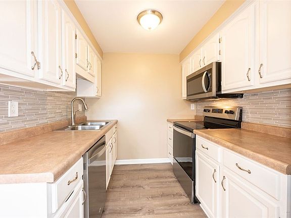 This home is truly a perfect 10! Nothing to do but unpack and enjoy. Updated throughout with quality finishes. Remodeled kitchen with glass backsplash and stainless-steel appliances 2 years young. Both bathrooms updated with full bath offering a heated jet tub. All closets on 2nd floor with new organizers and lighted. Enjoy the large covered low maintenance deck with family and friends. Plenty of storage as well. new furnace installed June, 2024. And don't forget an end unit with nice side yard. HOA fee includes lawn maintenance, roof and common areas updates.