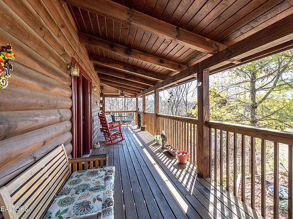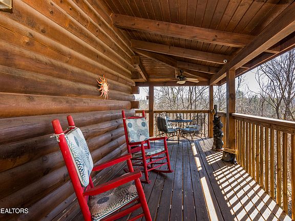 Escape to this charming 3-bedroom, 2-bath mountain log cabin, perfect for a serene getaway. The open floor plan features a stunning gas stone fireplace, creating a cozy atmosphere for relaxation. On the main level, you'll find two spacious bedrooms and two bathrooms, offering comfort and convenience. The large loft area is a versatile space with three built-in beds, ideal for recreational activities or additional sleeping arrangements. Step outside to the wrap-around porch and soak in the breathtaking mountain views. Some newer windows onmain and new front door. Enjoy access to resort amenities, including a swimming pool and barbecue area. Conveniently located near shopping and attractions, this cabin offers the perfect blend of tranquility and accessibility.