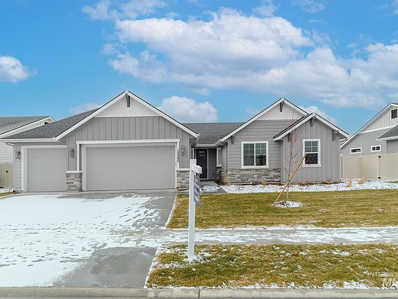 "The Brennan." An inviting foyer and flex room flow into the expansive great room with cozy fireplace and casual dining area with access to the covered patio. The well-designed, open kitchen includes a large center island with breakfast bar seating, ample counter and cabinet space, and a generous pantry. The primary bedroom is enhanced by a spacious walk-in closet and an alluring primary bath with a dual-sink vanity, a large soaking tub, a luxe tile shower, and private water closet. Secondary bedrooms feature walk-in closets and share a hall bath. Additional highlights include a conveniently located laundry off the everyday entry and plenty of additional storage. Home is under construction. Photos are similar. BTVAI