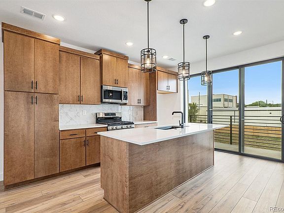 Brand new townhome MOVE IN READY backing to open space! Feel the openness of The Henry floor plan as soon as you enter the front door. On the lower level, you’ll find a versatile flex room and bathroom, offering access to the covered patio. With an expansive kitchen and dining area that offers direct access to the deck on the main floor, you will have the perfect space for entertaining! The upper level features an incredible dual master layout, both including walk-in closets and large bathrooms with luxurious amenities. With an attached 2-car garage, this is a great space for multigenerational or roommate living. The Hub at Virginia Village is a centrally located community in Denver, offering easy access to Cherry Creek, Wash Park, and Downtown. With quick routes to both I-25 and Colorado Blvd., The Hub makes it easy to get anywhere in the metro area. You'll be close to local dining, shopping, and entertainment, and outdoor spaces for walking, biking, and exploring are just minutes away. The community features beautifully designed townhomes with modern finishes, creating the perfect urban living environment. *Please note, these photos show a different unit with the same floor plan. Finishes may vary.