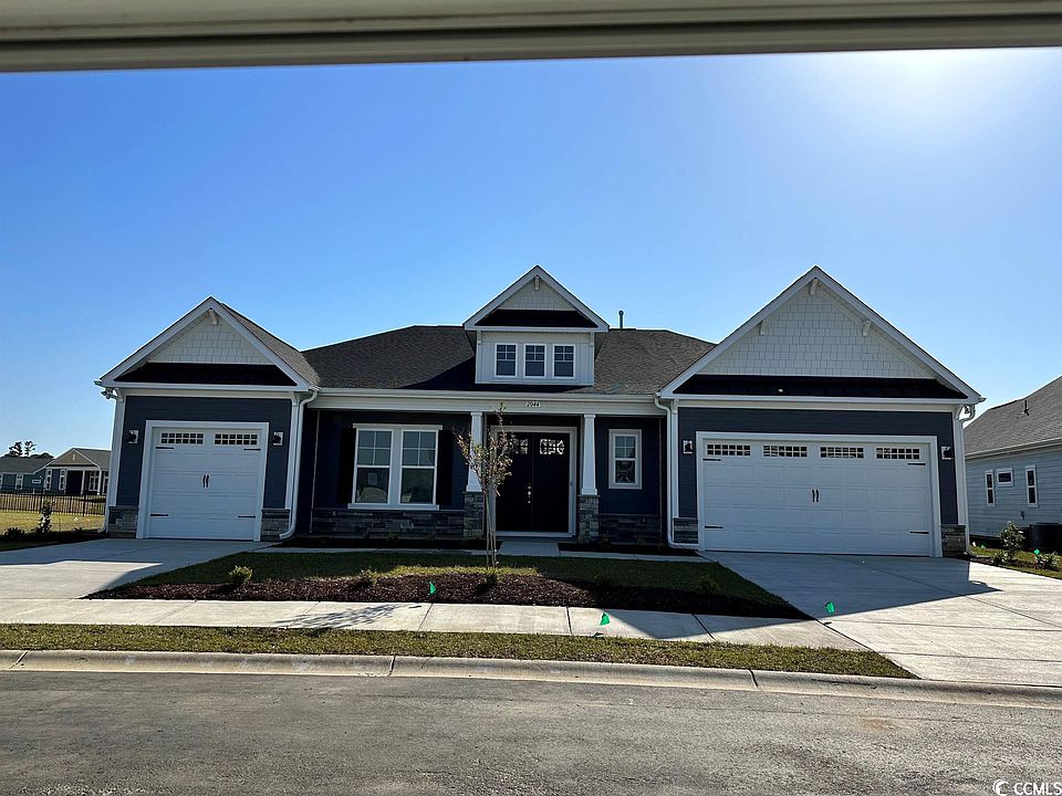 Starting at 2,714 square feet, the Sandcastle is a spacious retreat complete with coastal-inspired architectural accents, enormous outdoor living spaces, and a spacious wide-open floorplan. This unique model has an option for an in-law suite, creating up to five bedrooms and three and a half bathrooms. Enter The Sandcastle from the covered porch through stunning French doors into a spacious foyer with your drop zone connected to your two-car garage and half bathroom tucked away to the left. To your right, you'll find the flex room which can be either an office, formal dining room, or an additional bedroom. Find another spacious drop zone, laundry room, and second garage. Straight ahead lays your open floorplan where the family room, kitchen, and dining room all flow effortlessly. This plan offers numerous options to personalize the space to fit your heart's desires with an elegant tray ceiling overhead, or even a gourmet kitchen island to ensure enough seating for all of your family and friends. This kitchen features a large pantry and an island overseeing the family room. From the living area either transition to an enormous picturesque covered porch which can be made even more intimate with an optional outdoor fireplace or head over to the luxurious owner's suite with a stunning tray ceiling. The owner's suite features two spacious walk-in-closets alongside a luxurious bathroom that feels like a true retreat featuring a deep soaking tub to wash away all of your worries. Behind the kitchen, you will find two bedrooms and a full bath in the middle along with two linen closets ensuring plenty of storage. This home has so much to offer and has options to personalize the space to make it the home of your dreams. Call The Sandcastle your home today!